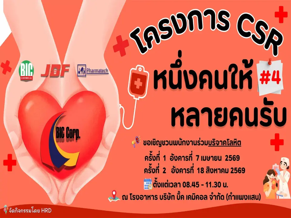 บริษัท บิ๊ค คอร์ปอเรชั่น จำกัด และบริษัทในเครือ ร่วมส่งต่อโลหิต ต่อชีวิตเพื่อนมนุษย์ ในโครงการ “🩸1 คนให้ หลายคนรับ 🩸” ครั้งที่ 1 ประจำปี 2569 วันที่ 07 เมษายน 2569 – คณะผู้บริหารและพนักงาน บริษัท บิ๊ค คอร์ปอเรชั่น จำกัด […]